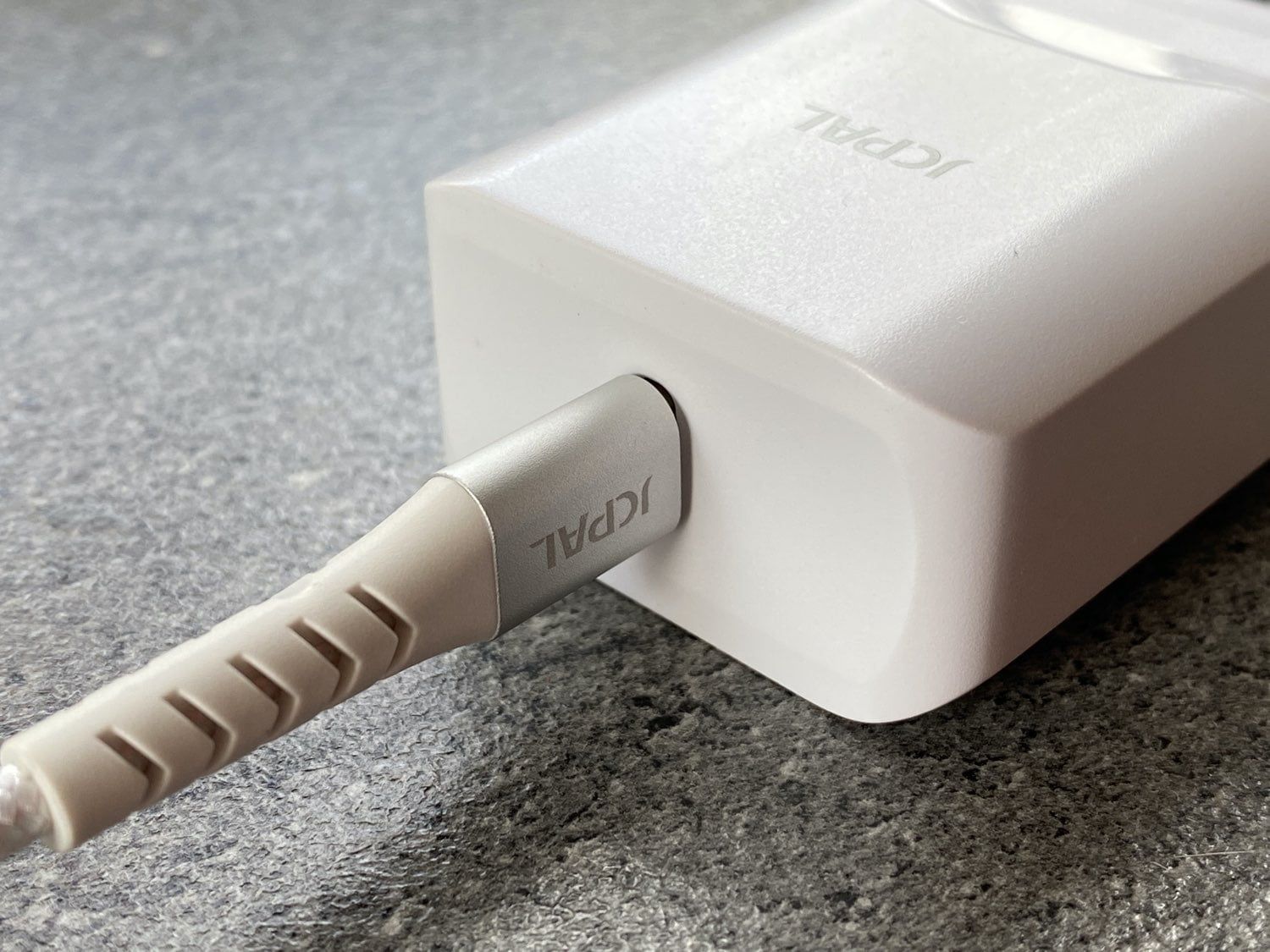 Zasilacz od JCPAL wykonany został w pełni z wysokiej jakości plastiku, co umożliwia odpowiednie odprowadzanie ciepła. Adapter wspiera oczywiście Power Deliver (PD) i Quick Charge 3.0, co umożliwia nam ładować szybko nie tylko iPhone’a, ale i inne smartfony z Androidem na pokładzie. Jest to więc jak najbardziej uniwersalny zestaw.