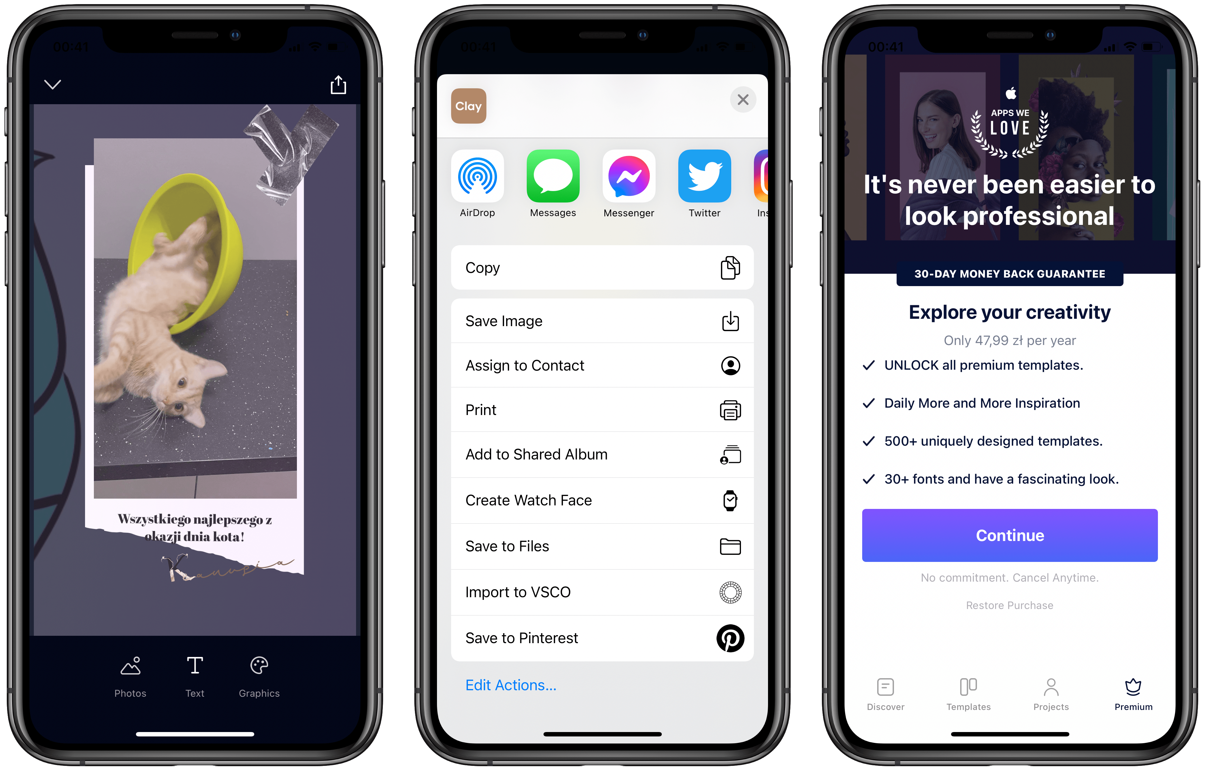 Ostatnim już programem na liście jest opisywany przeze mnie ostatnio w serii „aplikacja tygodnia” Clay. Umożliwia on tworzenie stories dzięki szablonom, wykorzystuje dużo pięknych naklejek i pomaga we wszystkim tak bardzo, jak to możliwe. Oferuje nie tylko tworzenie pięknych relacji – to jednak główna część, o której pisałem zarówno w tamtym artykule, jak i w tym – gdyż tego właśnie dotyczy to zestawienie.