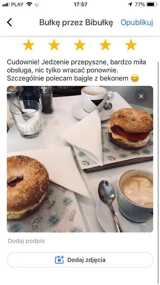 Pamiętaj, że Twoją recenzję przeczyta drugi człowiek. Ba, nie tylko ten, który planuje swoją wizytę w tym miejscu, ale też ten, który prowadzi biznes. Musisz być wiarygodny. Pisz od serca – to, co uważasz. Zachowaj jednak kulturę. Polecam wypisać od myślników to, co Ci się podobało, a co nie. Zaproponuj też zmiany. Na pewno ucieszy to właściciela.