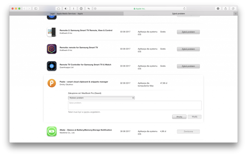 Te ostatnie z wymienionych przypadków często mają miejsce w odniesieniu do sklepów online z multimediami, takimi jak choćby jabłkowy App Store. Apple na szczęście pozwala zabezpieczyć się przed takimi sytuacjami umożliwiając zwrot poniesionych kosztów w ciągu 14 dni od dokonania zakupu. Niewielu jednak wie jak uruchomić i przejść cały proces reklamacji.