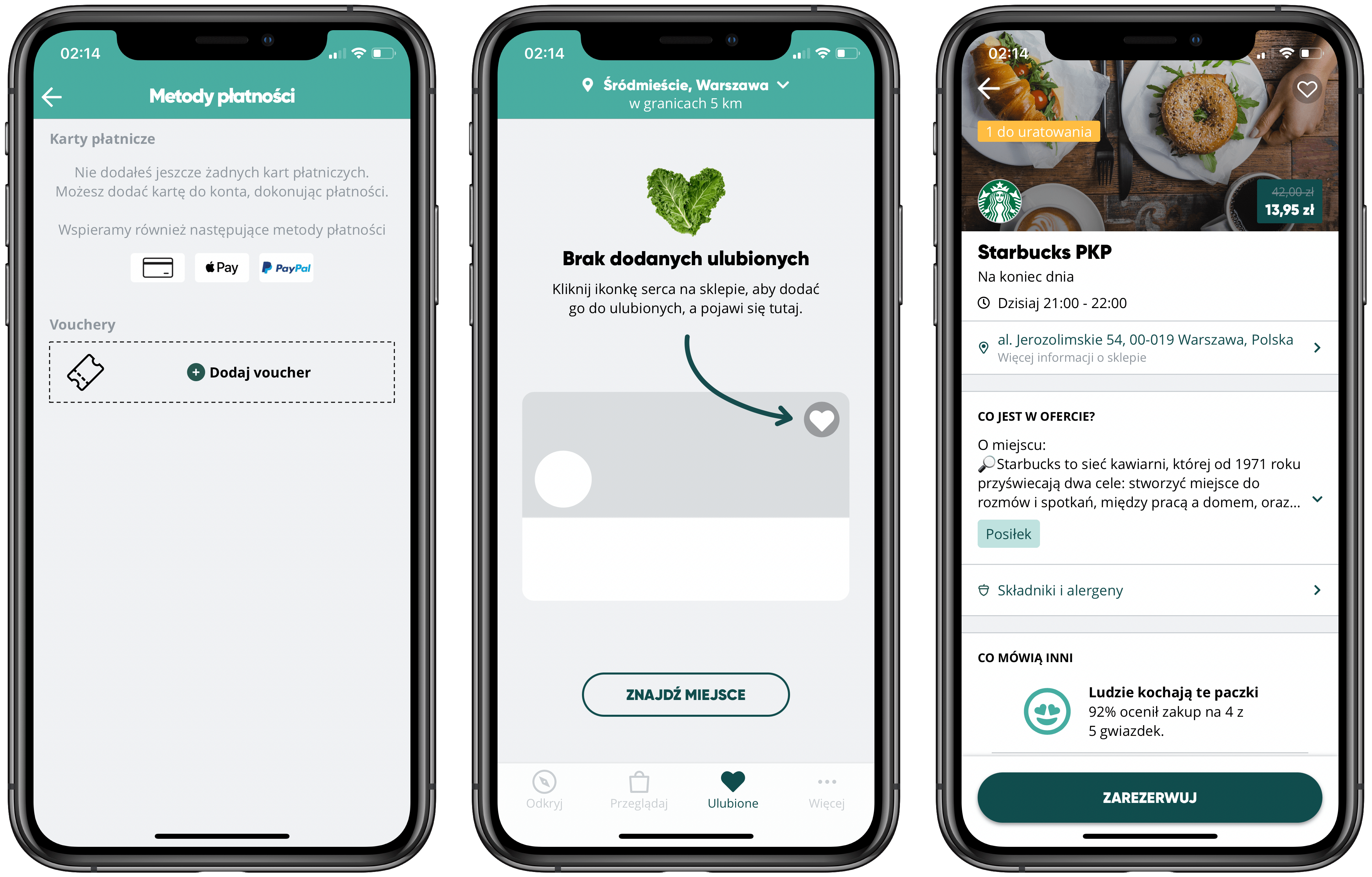 Firmy muszą wyrzucać jedzenie pod koniec dnia. Często pracownicy nie mogą go zabrać, co według mnie jest całkowitą abstrakcją. Too Good To Go wprowadza model, dzięki czemu za bardzo małe koszta możecie odebrać paczkę-niespodziankę, w której znajduje się odpowiednia ilość jedzenia o wiele większej wartości. Kupujecie je taniej, bo ma bliski termin przeterminowania się, jednak to nadal bardzo dobre jedzenie. Knajp, które to wspierają jest cała masa. Zerknijcie zresztą na zrzuty ekranu! Płacicie w domu, rezerwujecie paczki – i tyle! Musicie odebrać ją oczywiście sami.
